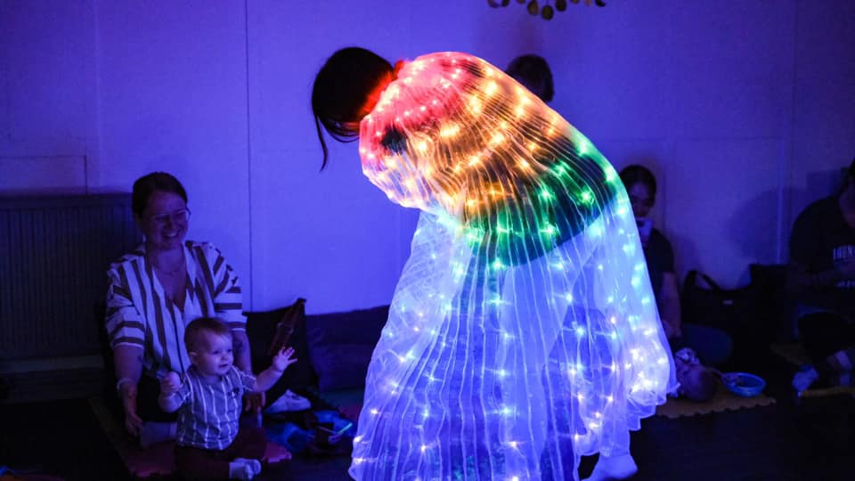 The most incredibly beautiful dark room sensory classes to engage and delight the senses of you and your little one. These classes allow you time to explore the environment around you whilst also having led activity, song and interaction.